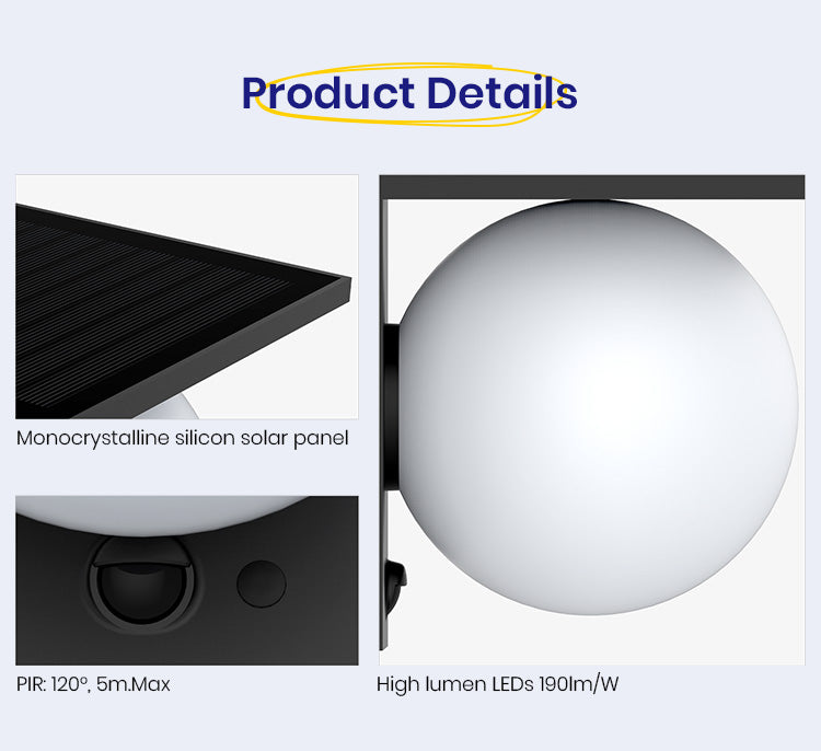 Presentamos nuestra innovadora lámpara solar de pared, diseñada para complementar cualquier fachada con su aspecto esférico único. Con una iluminación de 1000 lúmenes, disfrutarás de una luz brillante y acogedora justo donde la necesitas.
